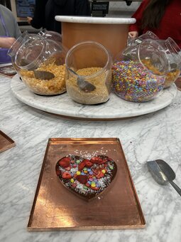 Das Highlight des Besuchs war, dass wir verschiedene Sorten Schokolade probieren durften. Einmal sogar an einem Schokoladenbrunnen. Das machte nicht nur Spass, sondern war auch sehr lecker. Am besten gefiel mir jedoch, dass wir am Schluss unsere eigene Schokolade herstellen konnten. Dabei durften wir selbst entscheiden, wie wir die Schokolade haben wollen. Einige verbrachten die Zeit auch noch in der Bar, wo man Essen und Trinken bestellen konnte. Jeder hatte ein einzigartiges Erlebnis.
